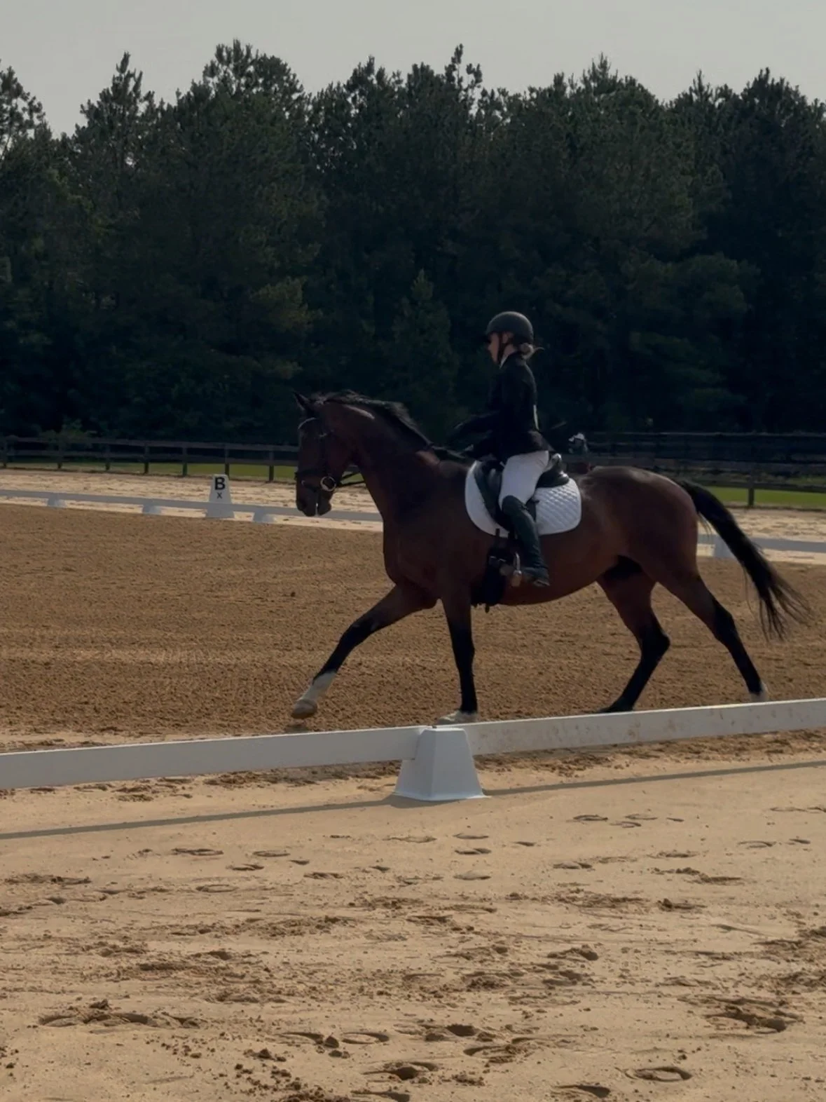 A lovely mover who excels in the dressage court, “Raine” is a gorgeous, uphill and forward ride. She has done plenty of dressage, jumper shows, and combined tests in the past. More recently focused on dressage and she seems happier with that job. Ideal home would be with a motivated teen or adult in a program. She has schooled through 2nd Level and has nice lateral movements and a clean change!